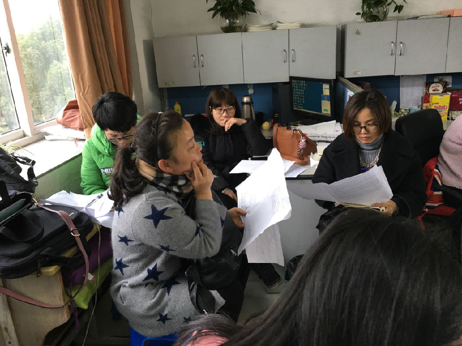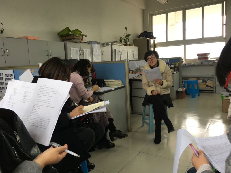 课后,冯洁老师主持,先是两位老师就”预设达成----授课过程-----学生反应“、讲述自己的心得体会,接着工作室其他成员分别对两位老师上课进行点评。随后冯洁老师做最后总结和工作室下一阶段任务布置。
