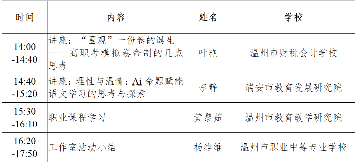 关于举行温州市黄黎茹“名师送教”工作室第17次活动的通知